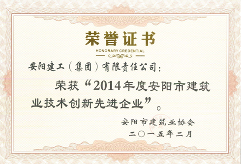 安陽(yáng)建工集團(tuán)獲“2014年度安陽(yáng)市建筑業(yè)技術(shù)創(chuàng)新先進(jìn)企業(yè)”殊榮