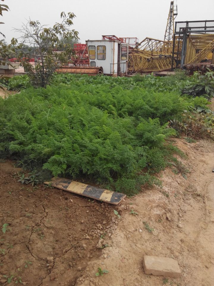 “你看我們這里的樹、車、房子,上面都是灰塵,只要有車過,就像沙塵暴似的,天天如此,好不容易雨天來了沒沙塵暴了,“泥石流”又來了,鞋上全是泥”,說話間,我們又來到了一片片菜地,“你看,這是我們的菜地,有蘿卜、白菜、豆角……”。采訪中我了解到,由于租賃中心地處郊區(qū),特別偏遠(yuǎn),所以家住市區(qū)的員工中午就無法回家了,在單位做飯吃。但是地勢偏遠(yuǎn),買菜就成了一大問題,再者這么多人每天的消耗量也挺大的,所以肖部長就帶領(lǐng)大家在單位空閑地方種起了菜,自給自足。這讓我不禁想起了一句話“山不在高,有仙則名,水不在深,有龍則靈,斯是陋室,惟我德馨”。