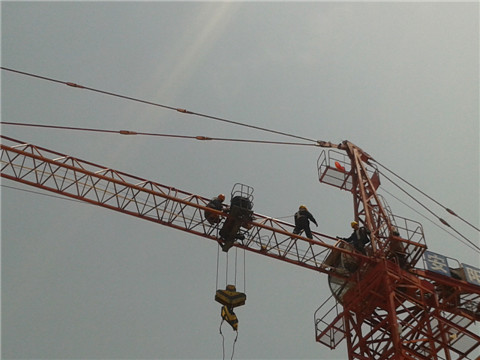 炎炎夏日,維修吊塔的每一個工人都是身穿工裝、長袖飄飄,這倒不是為了什么時尚或個性,而是若一不小心觸到一直暴曬在太陽下的吊塔部件,手臂就會被燙傷;同時,還要穿底子很厚的鞋,否則腳底板會受不了。當(dāng)然,即便有了這樣的全副武裝也不是萬無一失,站在百米高的吊塔上,頭頂烈日,腳踩“風(fēng)火輪”,整個身體就像被放入了“烤箱”一般,所以站一會兒就會受不了,但沒有人會停下、會放棄,因為他們知道, 這里耽誤一分鐘,工地就晚一分鐘開工,“不能影響項目的工作進(jìn)度”是大家始終堅持的工作原則。